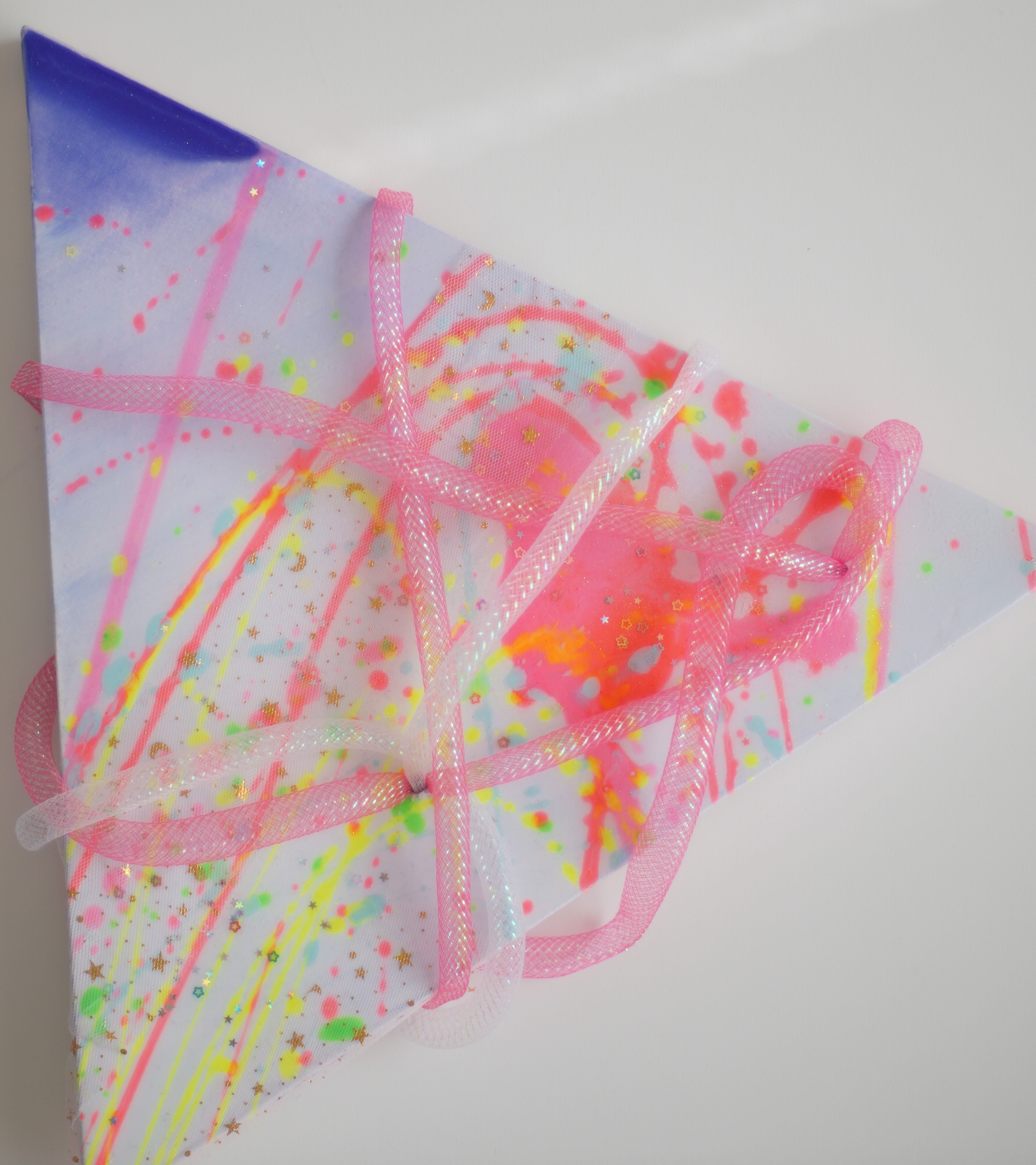三角の変形キャンバスにアクリル絵の具で色を付け