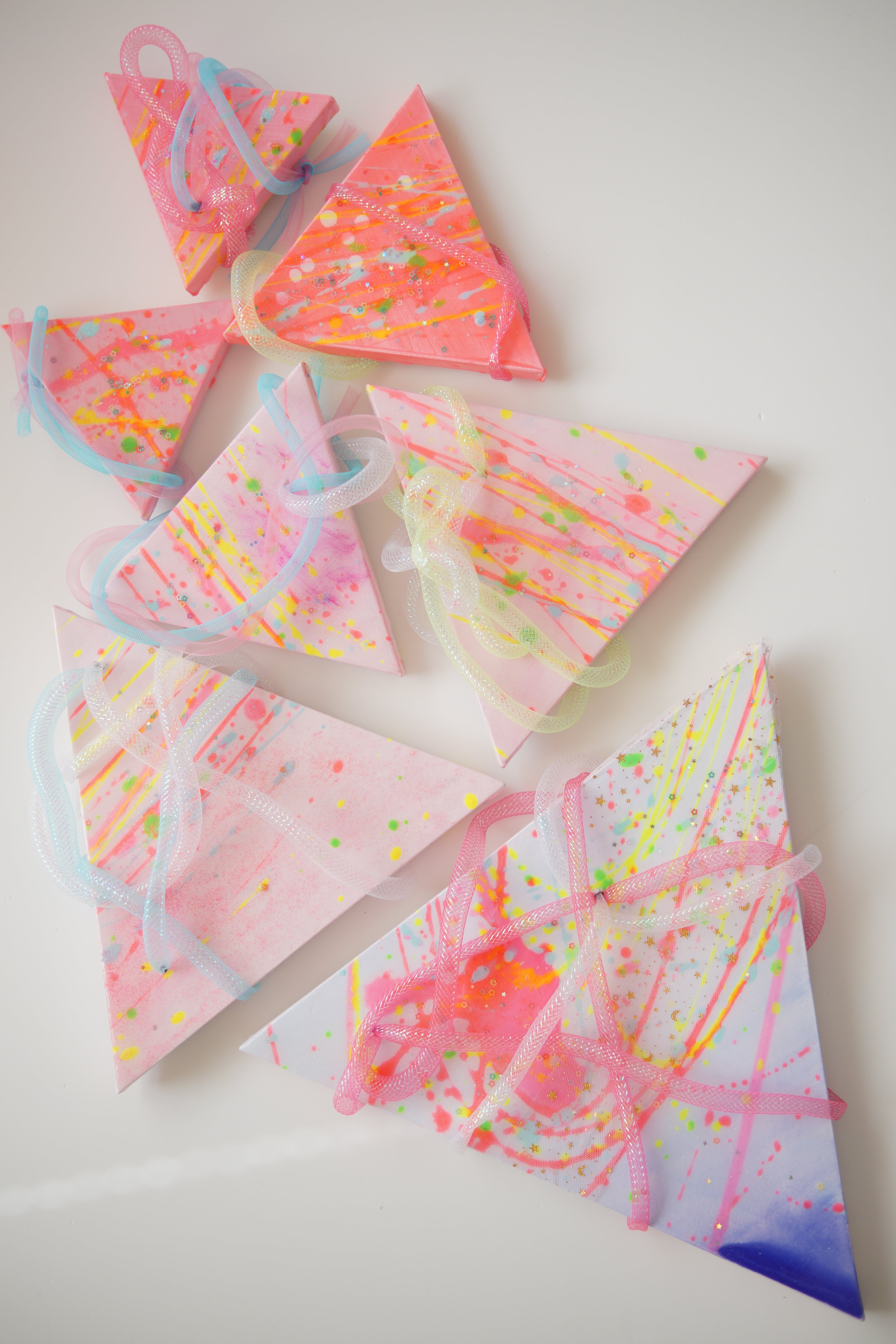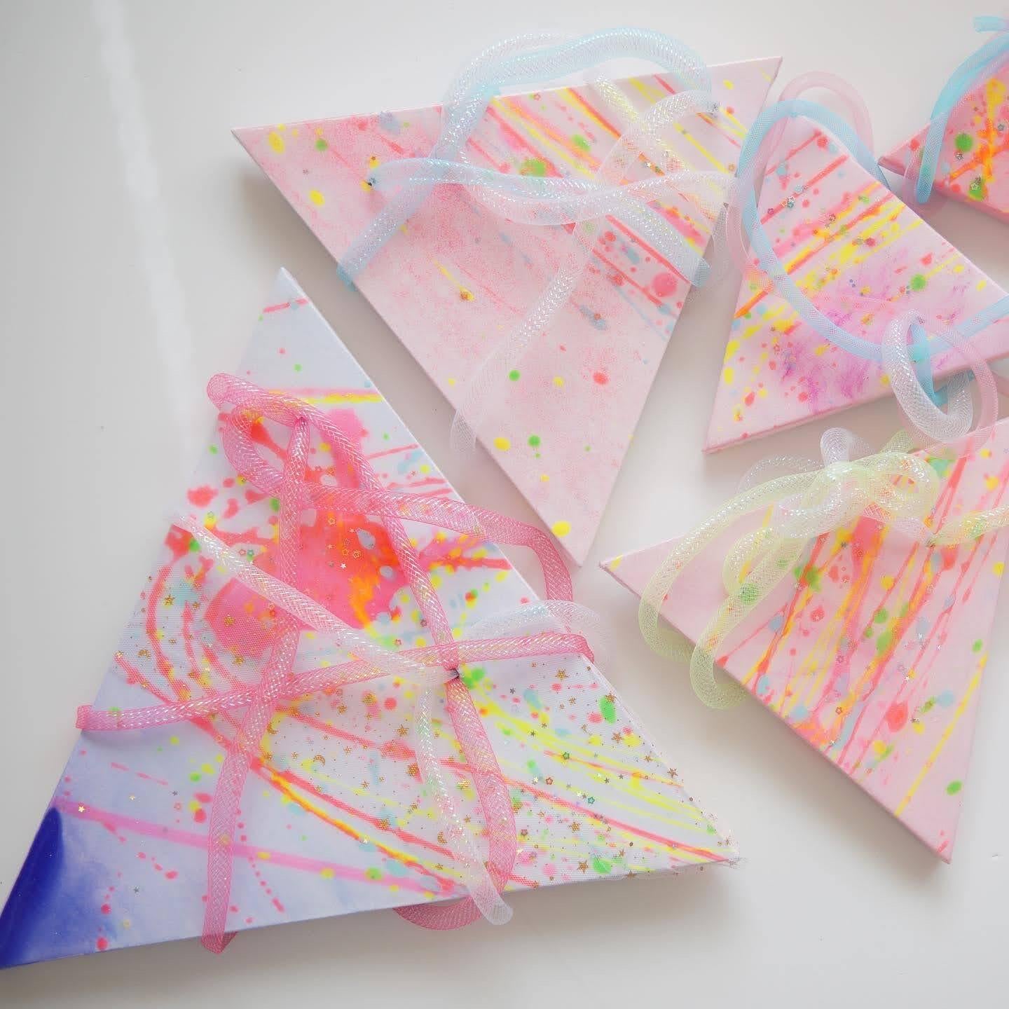 三角の変形キャンバスにアクリル絵の具で色を付け
