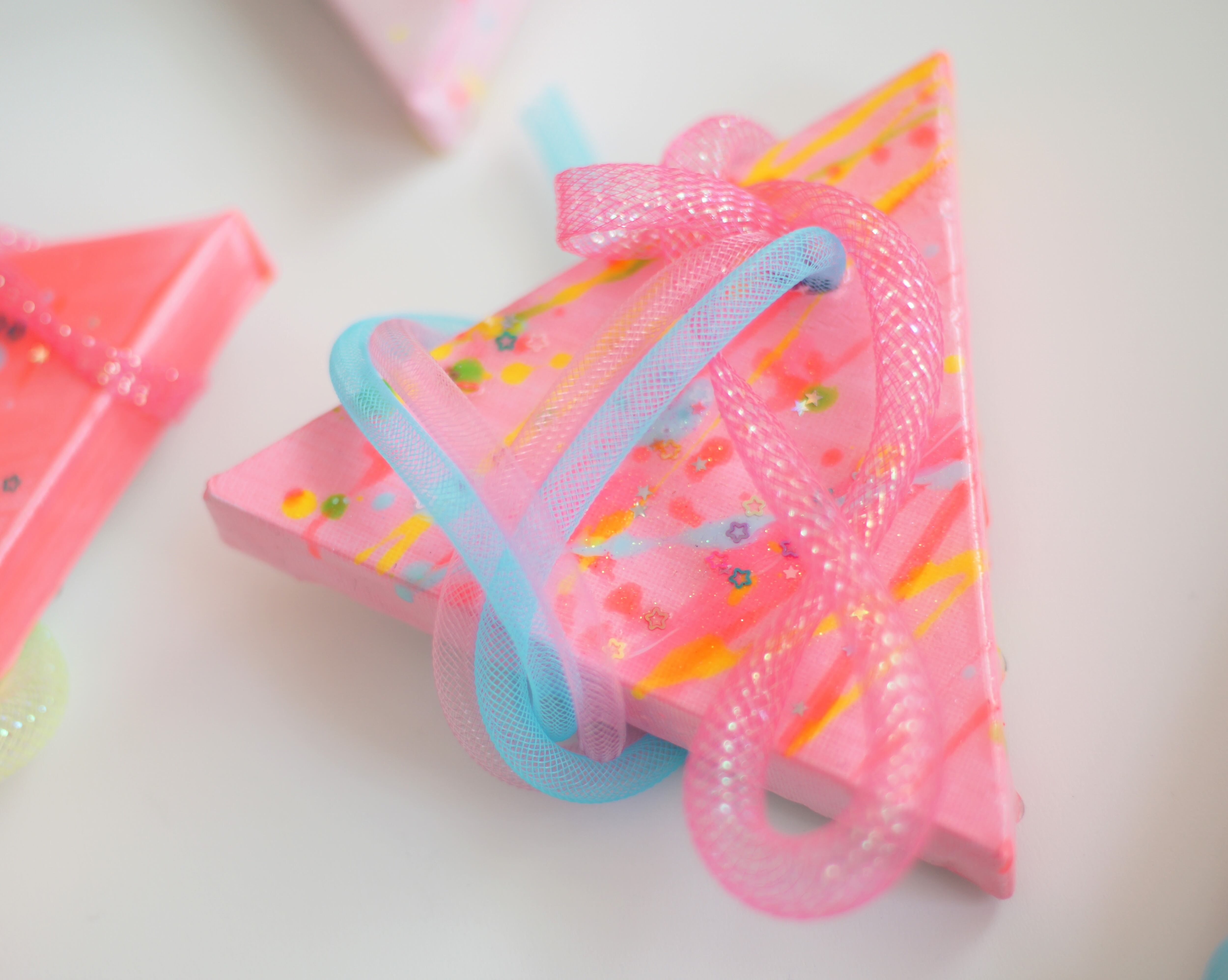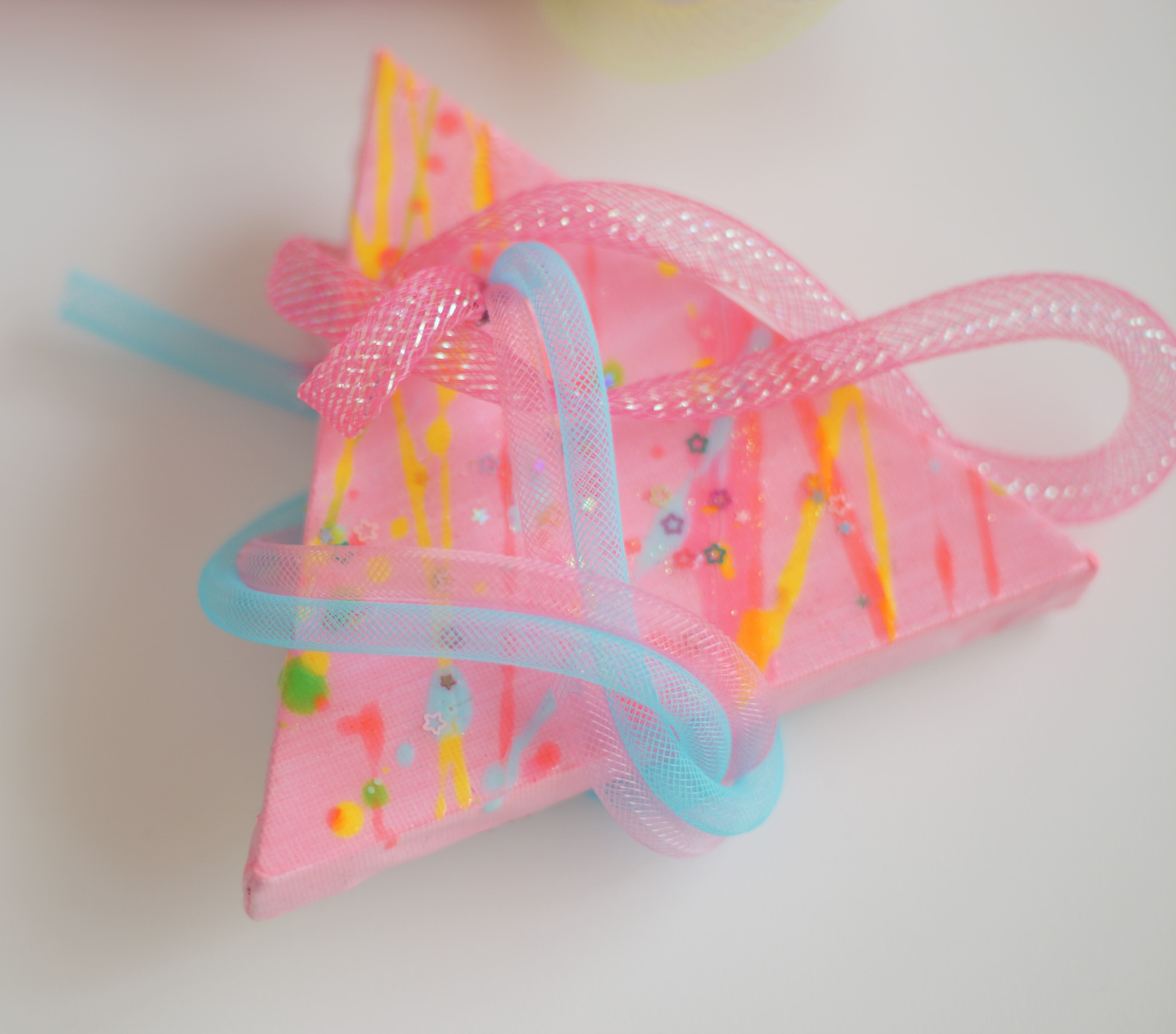 三角の変形キャンバスにアクリル絵の具で色を付け
