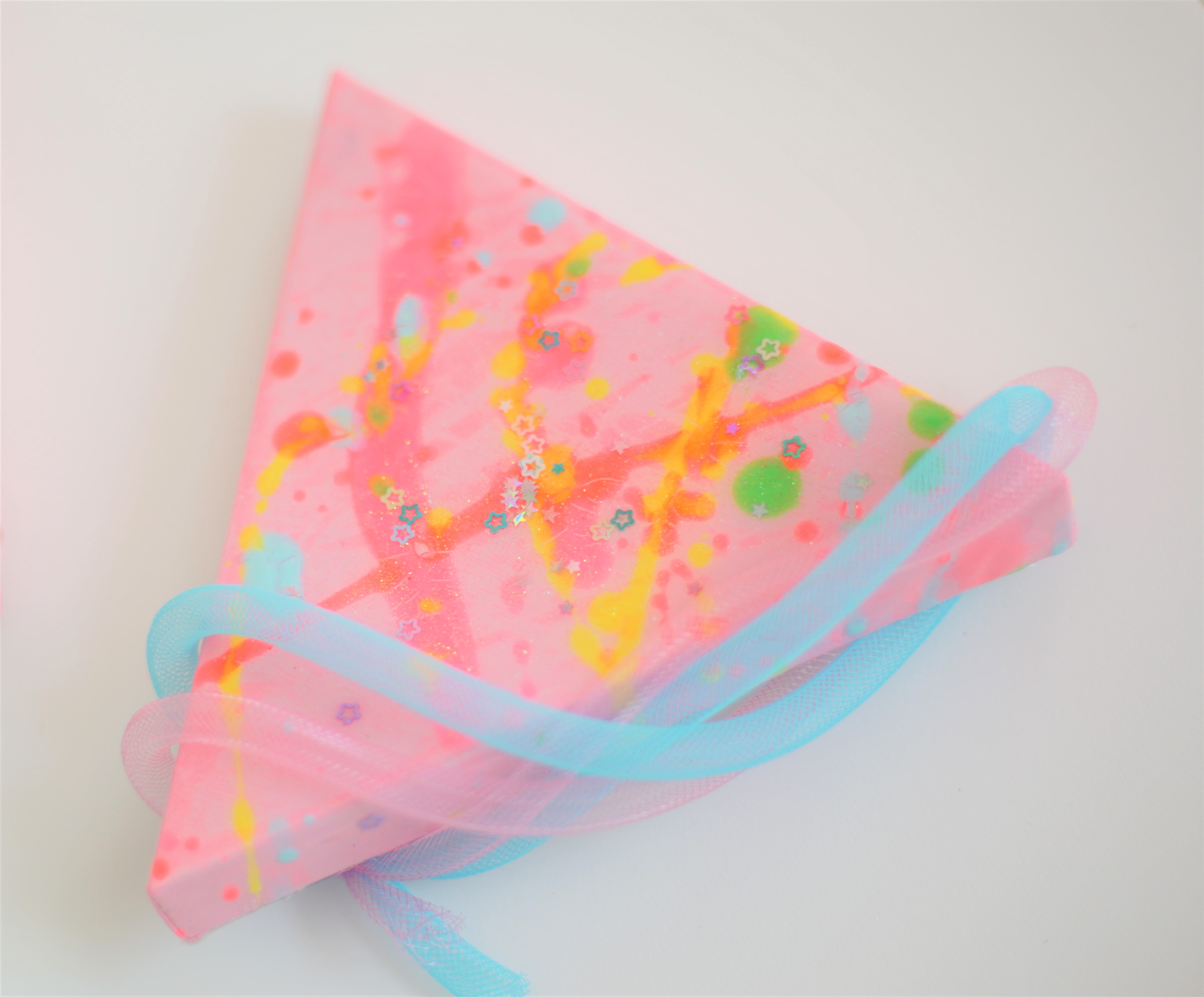 三角の変形キャンバスにアクリル絵の具で色を付け